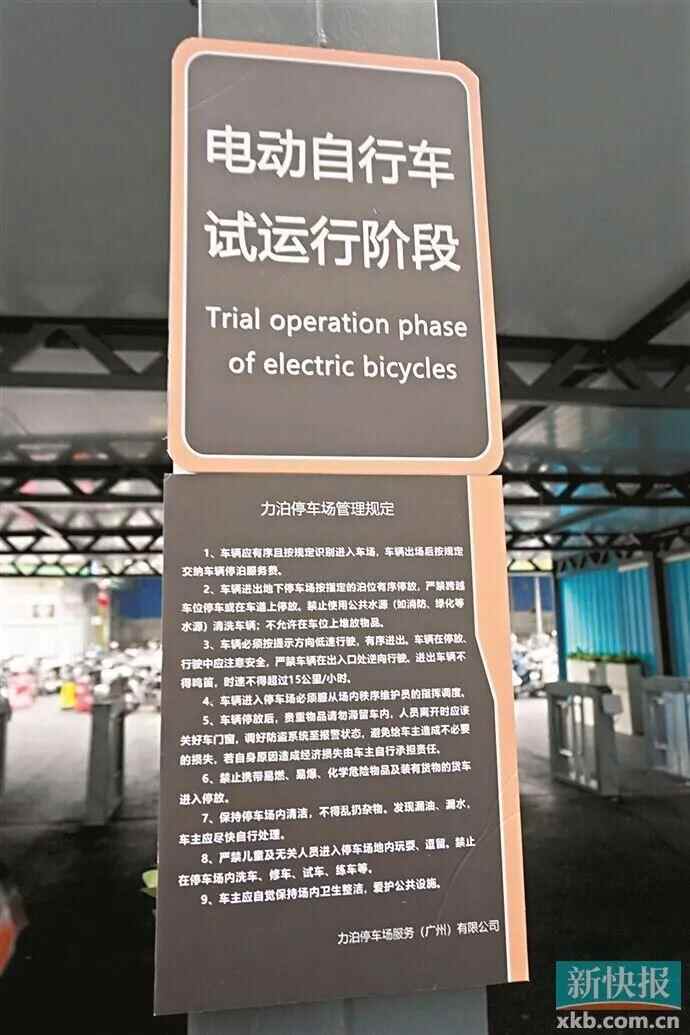目前,广州市出台了地方性法规《广州市电动自行车管理规定》,其中提出“提供有偿停放服务”的原则,对收费、服务、备案、公示等具体管理环节暂未作出规定。