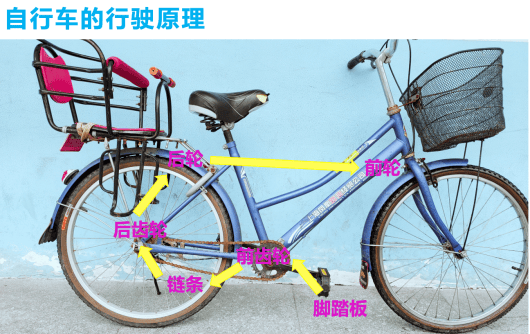 (1)这节课我们继续来研究“自行车里的数学”,在预备课上我们知道了自行车的种类、各部分名称,现在谁来简单说一说自行车是怎么向前行驶的?