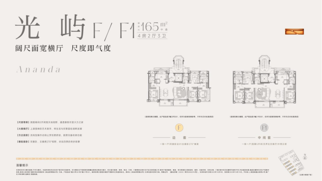 建面约165㎡中叠预计使用率最高约95%、罕见5面宽、尊享通透双套房,最大18.4米南向面宽。(注:非得房率,最终房屋得房率以实测报告为准)