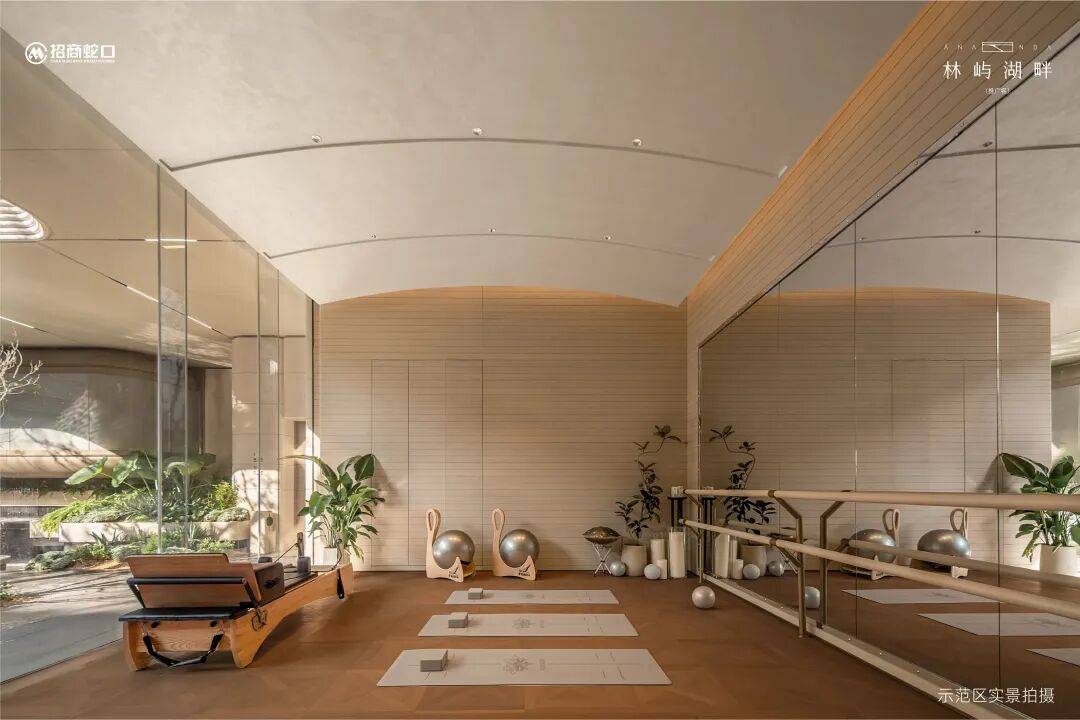 下沉式会所还搭载环幕级落地窗,在跑步、阅读的间隙抬头看到的是自然感的垂直飞瀑、错落有致的林荫灌木,令人赏心悦目。私宴厅、瑜伽室等多元空间,满足业主的健身和社交需求。