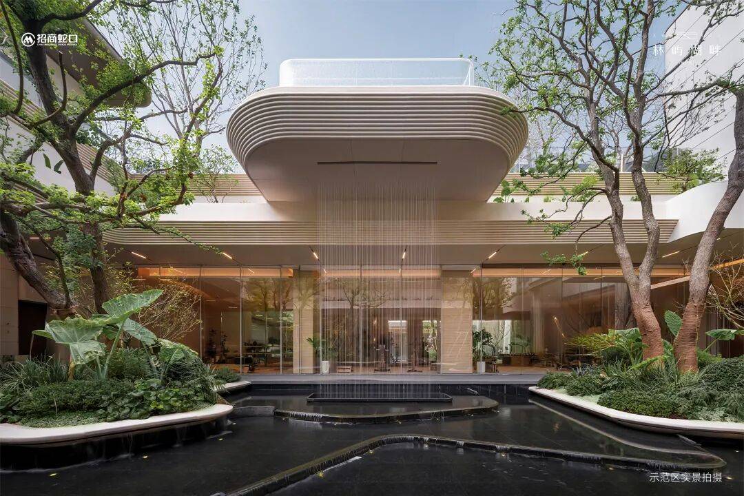 更绝的是,这座立体庭院中拥有约4.3米层叠飞瀑和悬浮水池,打造出媲美度假酒店的视觉奇观。