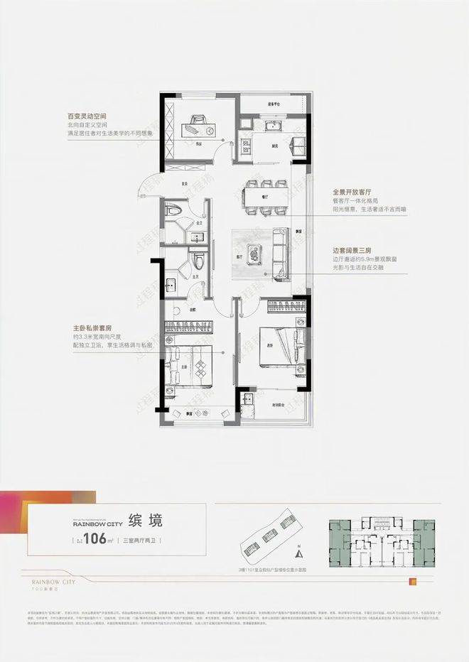 房子:建面约100方、106方三房两卫,兼顾实用性与尺度,装修带地暖(厨卫除外)、中央空调、智能马桶、洗碗机、客厅背景墙……