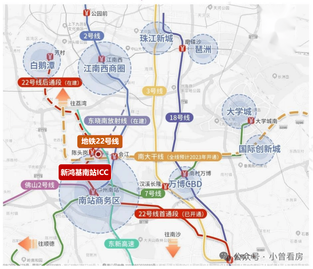 坐享“交通+产业+配套”优势,南站定位[粤港澳大湾区客厅与国家级门户枢纽经济区],以枢纽服务、国际消费和商贸会展为主导产业,带动总部经济、港澳专业服务、科技服务、文旅消费等,覆盖大湾区1小时生活圈,新鸿基致力打造优质的商场、甲及写字楼、五星级酒店等,令南站的人流可以留下来,让南站从中转站变成目的地,成为名副其实湾区C位&广州城市会客厅。