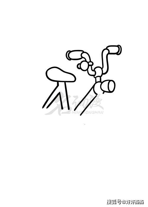 步骤一:首先我们要做的就是先把自行车的车头和坐垫画出来,然后顺着车头与坐垫将自行车的横杠以及三角架画好。